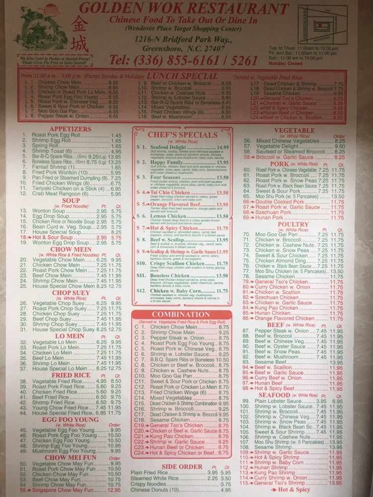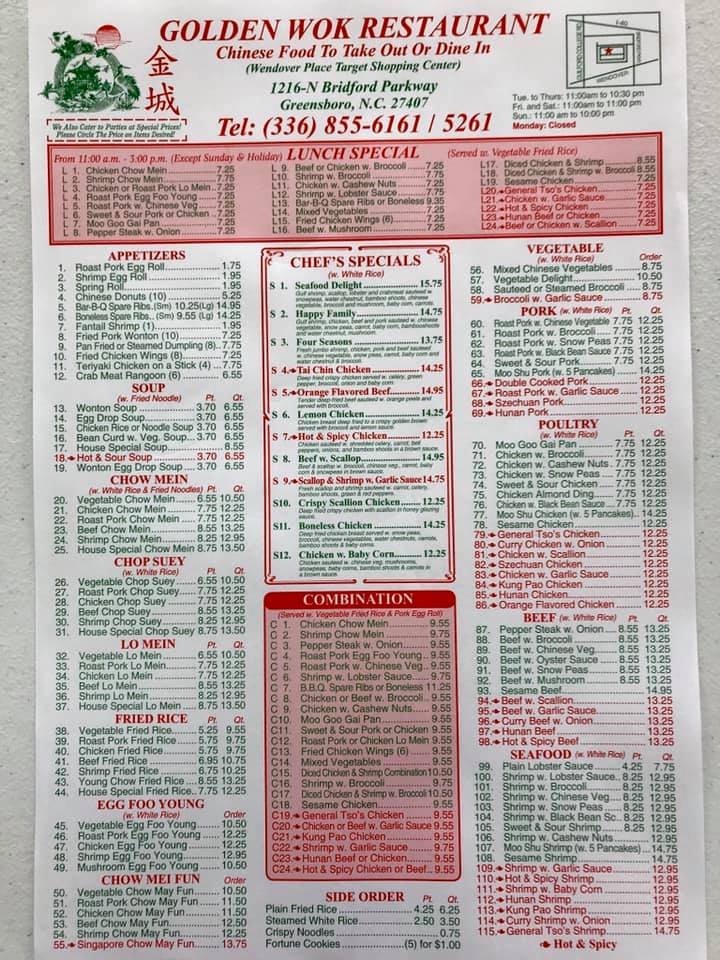 Golden Wok is a Chinese restaurant located in Greensboro, NC, offering a variety of options for customers. The restaurant provides delivery, takeout, and reservations, with vegan and vegetarian options available. It is wheelchair accessible and has accessible parking near the entrance. Customers have praised the restaurant for its quality food, with reviews mentioning dishes like egg rolls, wonton soup, sesame chicken, and crab Rangoon. The friendly staff and outstanding food contribute to its reputation as one of the best Chinese restaurants in the city. While some customers prefer other establishments, Golden Wok remains a solid choice for those looking for a quick and tasty meal. With a casual atmosphere and a range of menu items, including happy hour specials and alcohol options, Golden Wok caters to a diverse range of preferences.